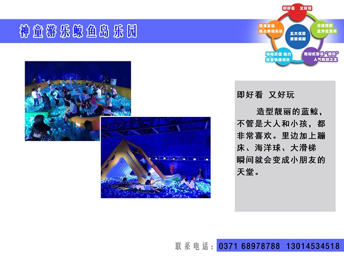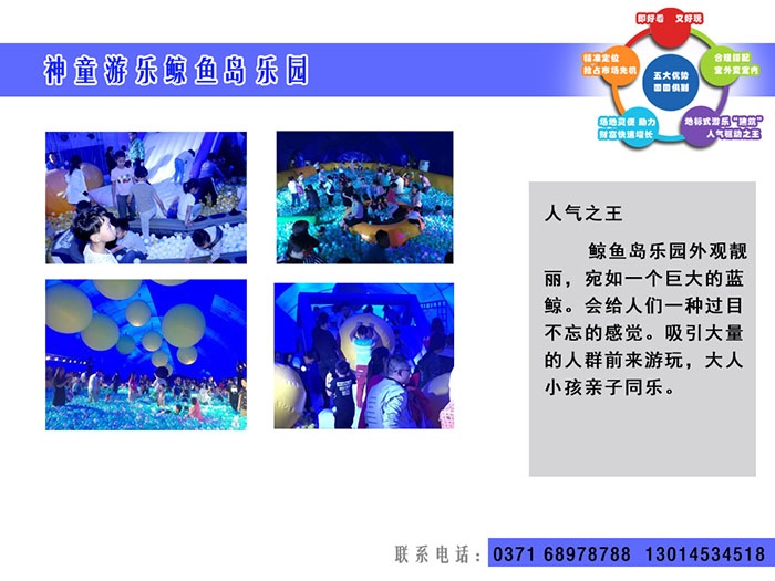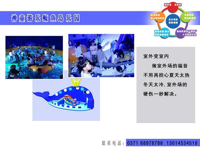 除了外觀以外,鯨魚肚內(nèi)更是有百萬海洋球池,配備有蹦床,迷宮,彩虹橋,旋轉(zhuǎn)椰子樹,秋千,滑梯,風(fēng)火輪,水床,沙灘池,涌梯等游玩設(shè)施,百萬海洋球樂園,承載著百萬海洋球,承載著百萬歡樂!