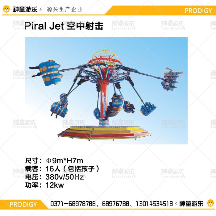 3、空中射擊游樂(lè)設(shè)備外圍的16個(gè)座椅被啟動(dòng)后做勻速旋轉(zhuǎn),當(dāng)轉(zhuǎn)到一定角度后座椅還會(huì)向外彈起,極具刺激性和趣味性,深受敢于挑戰(zhàn)自我的青少年以上人群游玩。
