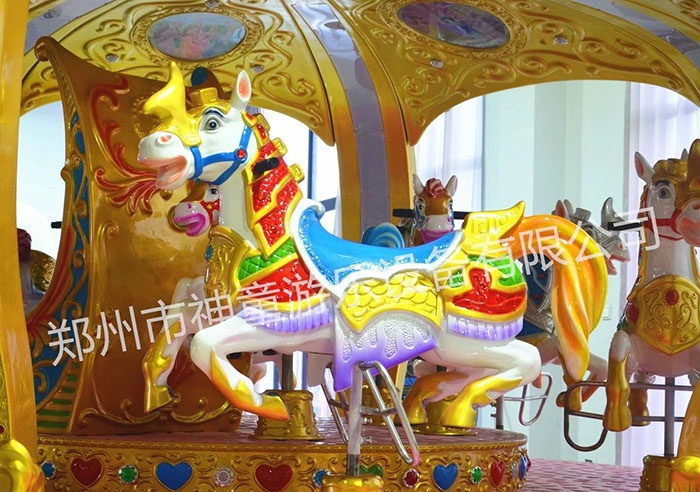 皇冠戰(zhàn)馬: 全新的造型設(shè)計,金碧輝煌的外形打造,創(chuàng)新的全齒輪運轉(zhuǎn)結(jié)構(gòu),安全變頻啟動,配以優(yōu)美動聽的音樂,使人們在游玩中既能輕松、愉快,又能在旋轉(zhuǎn)中體驗萬馬奔騰的真實感。