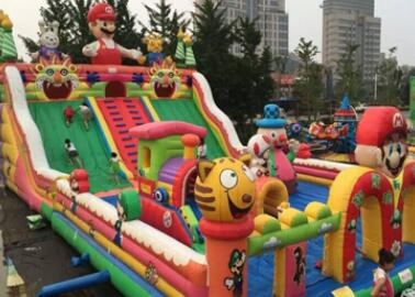 充氣城堡是一種外觀為城堡造型的充氣游樂設備,使用有著環(huán)保、柔軟的雙網(wǎng)雙面夾網(wǎng)pvc布料制作而成,在密封的情況下用風機不斷供氣來維持產(chǎn)品形狀。提供給兒童游樂。