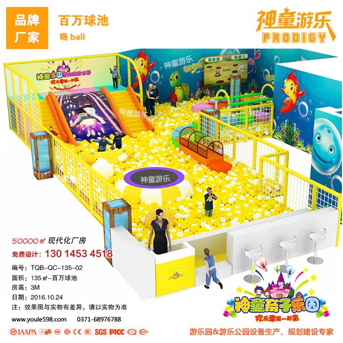 百萬(wàn)闖關(guān)球池的玩法也是各種各種,有海洋球瀑布,就是一個(gè)大的海洋球里面裝著各種五顏六色的小海洋球,它會(huì)不定時(shí)的打開(kāi),這種情景從遠(yuǎn)方觀看就好比海洋球瀑布;海洋球噴泉,讓你領(lǐng)略一番海洋球滿天飛得滋味;海洋球蹦床,在上面你可以無(wú)所顧忌地蹦跳,即使摔倒了,迎接你的也是難以估計(jì)的海洋球,那種感覺(jué),真正體會(huì)過(guò)的人才知道呢;海洋球大型滑梯,從上面滑下來(lái),你很快就會(huì)被淹沒(méi)在五顏六色的海洋球堆中,在這種地方玩捉迷藏是不過(guò)了。